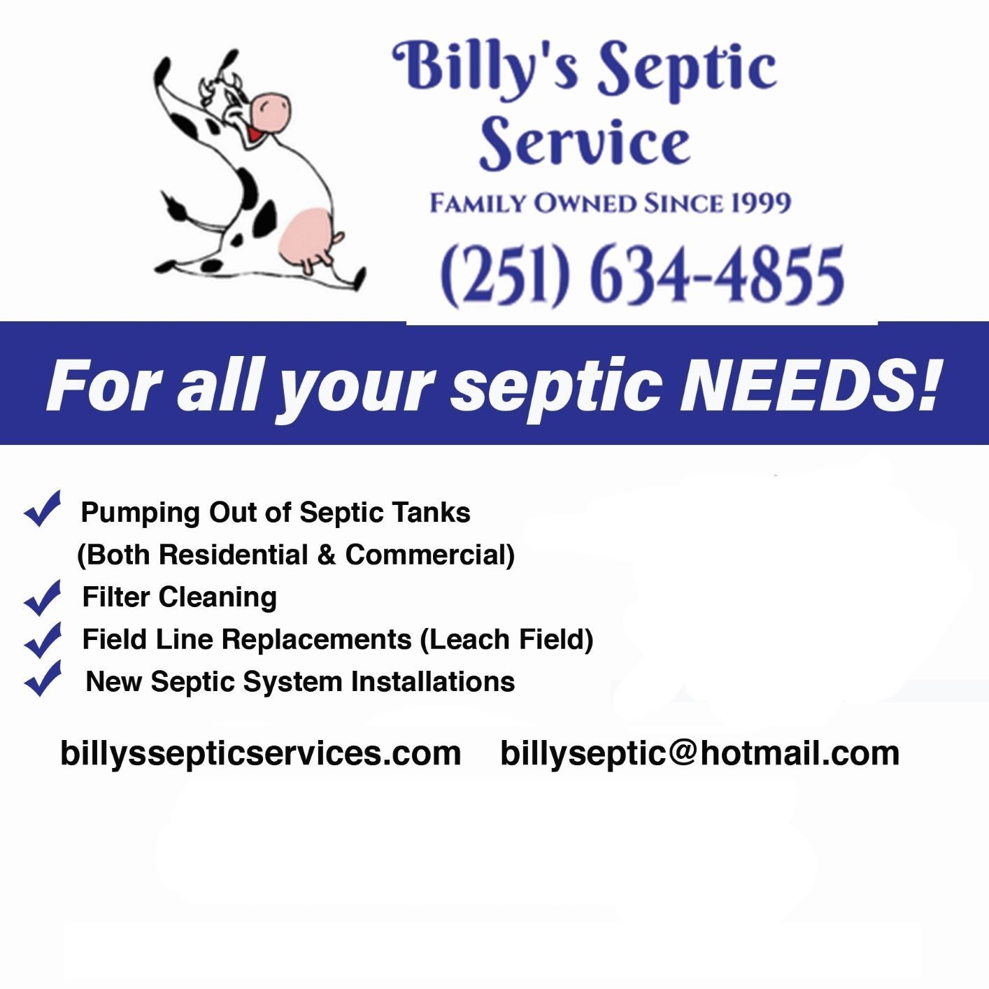 Count on Billy's Septic Services for all your septic repair, replacement, and installation services at affordable prices. Take a look at the pictures of our past septic projects. Call us